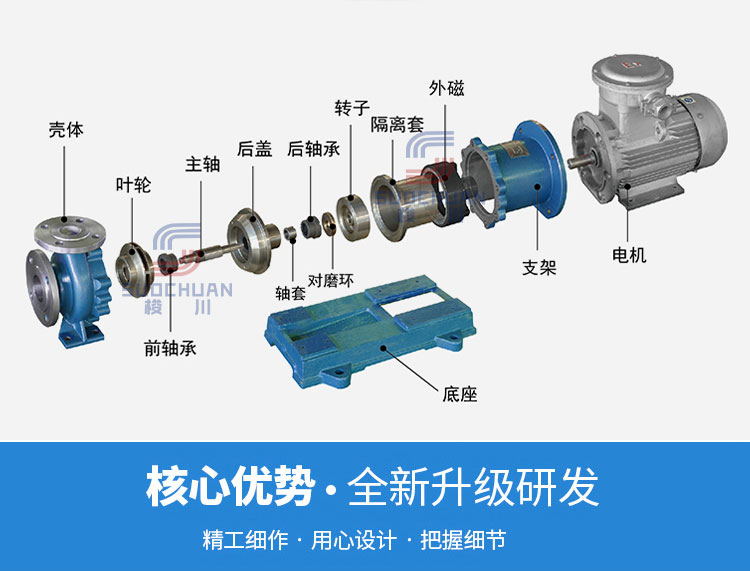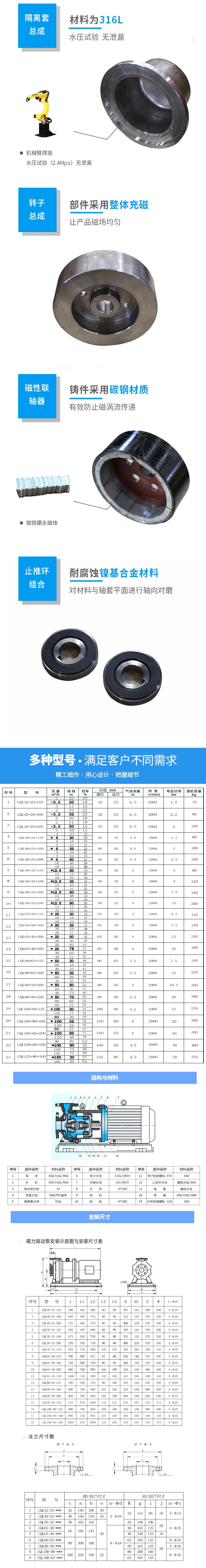 CQL型磁力驅動泵(簡稱磁力泵)是將永磁聯軸器的工作原理應用于離心泵的新產品,設計合理,工藝先進、具有全密封、無泄漏、耐腐蝕等特點,其性能達到國外同類產品的先進水平。產品用途磁力泵結構緊湊、外形美觀、體積小、噪音低、運行可靠、使用維修方便。可廣泛應用于化工、制藥、石油、電鍍、食品、電影照相洗印、科研機構、工業等單位抽送酸、堿液、油類、稀有貴重液、毒液、揮發性液體,以及循環水設備配套、過濾機配套。特別是漏、易燃、易爆液體的抽送,選用此泵則更為理想。